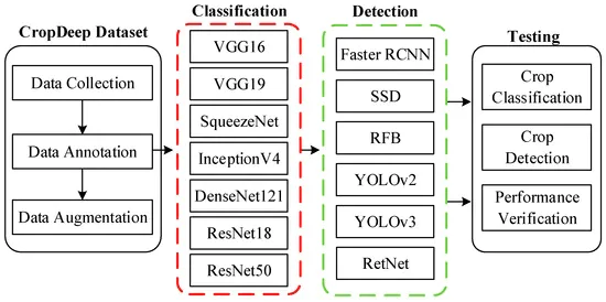 CNN is a DL based algorithm the main use of which is natural language processing, speech recognition, face recognition and so on. It has convolutional and pooling layers, which are used for feature extraction while the fully connected layers serve as classifiers. Most of the recent technological achievements in the field of agriculture are related to production and other areas of agriculture in an attempt to improve crop productivity, minimize plant diseases and improve modern automated agriculture. Data classification and image recognition are what DL is usually used for. These two areas can be divided into the following categories: data collection and preprocessing,model testing, neural network training, and the analysis of the result. For the first task, DL can be used in conjunction with other technologies such as radar, unmanned aerial vehicles, and Internet of Things, to provide image datasets of high quality. The DL applications are enhanced by these data making the resulting instruments more accurate.